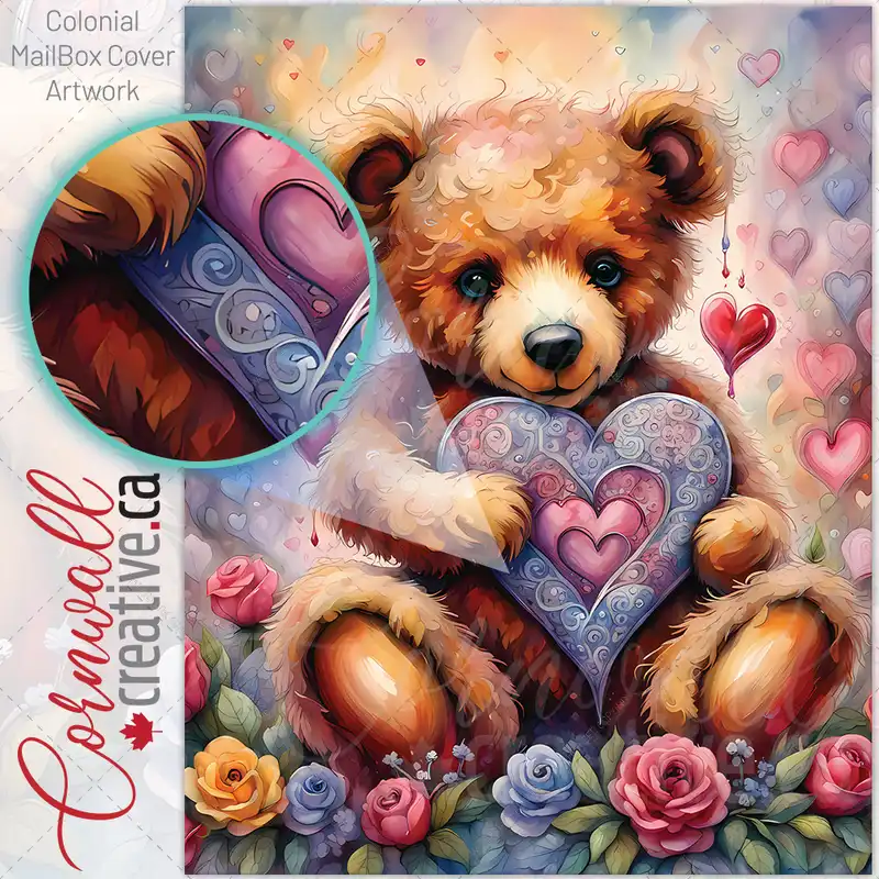 Valentines Bear with Hearts Colonial Mailbox Cover