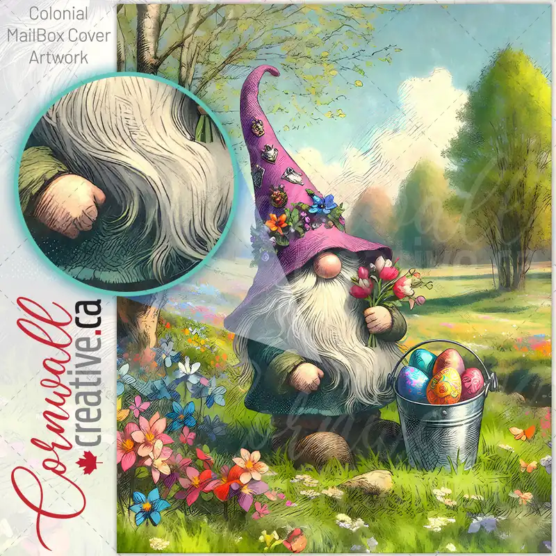 Easter Gnome with Flowers Colonial Mailbox Cover