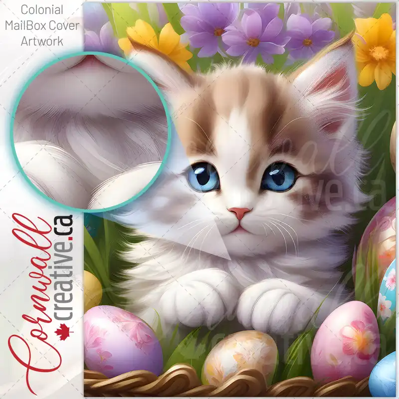 Blue Eyed Easter Kitten Colonial Mailbox Cover