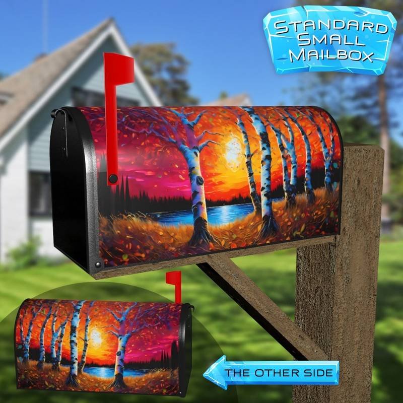 Autumn Birch Trees at the Lake Rural Farm Mailbox Cover