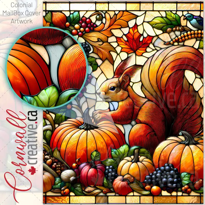 Stained Glass Autumn Squirrel Colonial Mailbox Cover