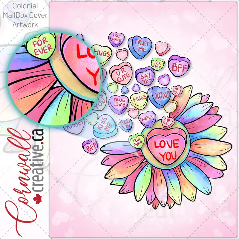 Colorful Valentine’s Candies and Flower Colonial Mailbox Cover