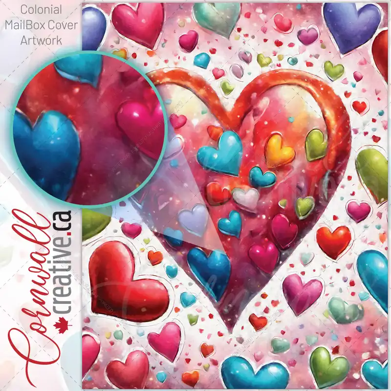 Colorful Valentine’s Day Hearts Colonial Mailbox Cover