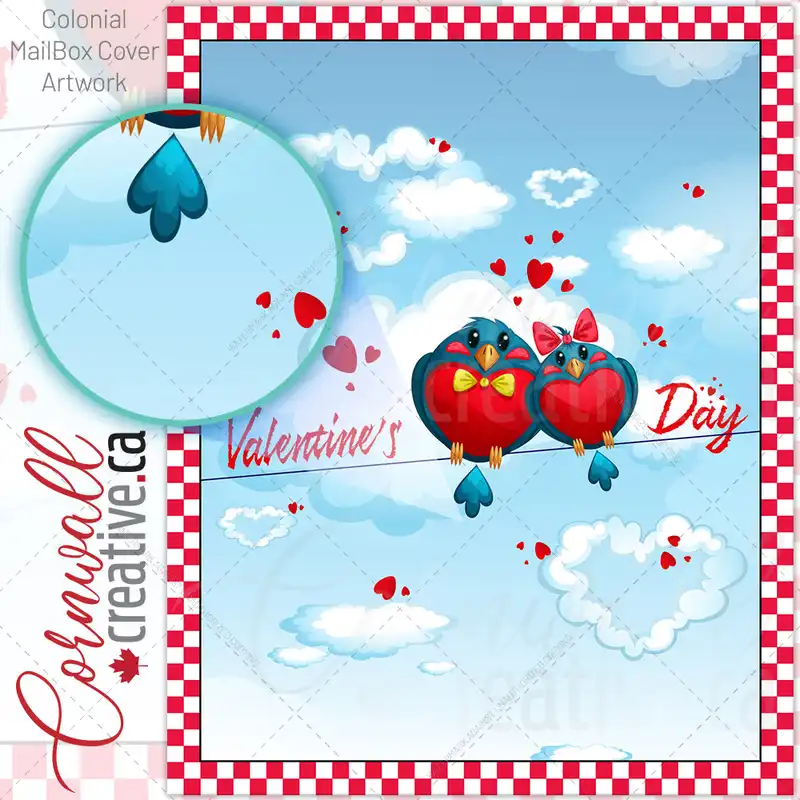 Valentine’s Bird and Hearts Colonial Mailbox Cover