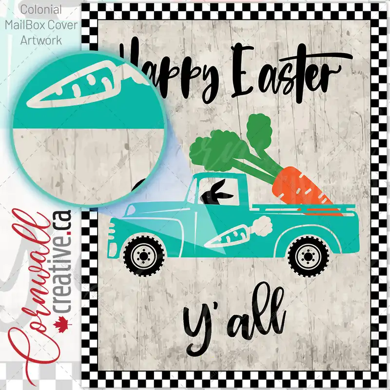 Easter Bunny Driving a Truck Colonial Mailbox Cover