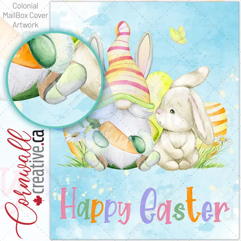Easter Gnome with a Carrot and Bunny Colonial Mailbox Cover