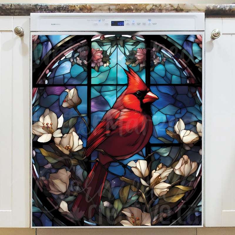 Stained Glass Window and Cardinal Magnetic Dishwasher Door Cover