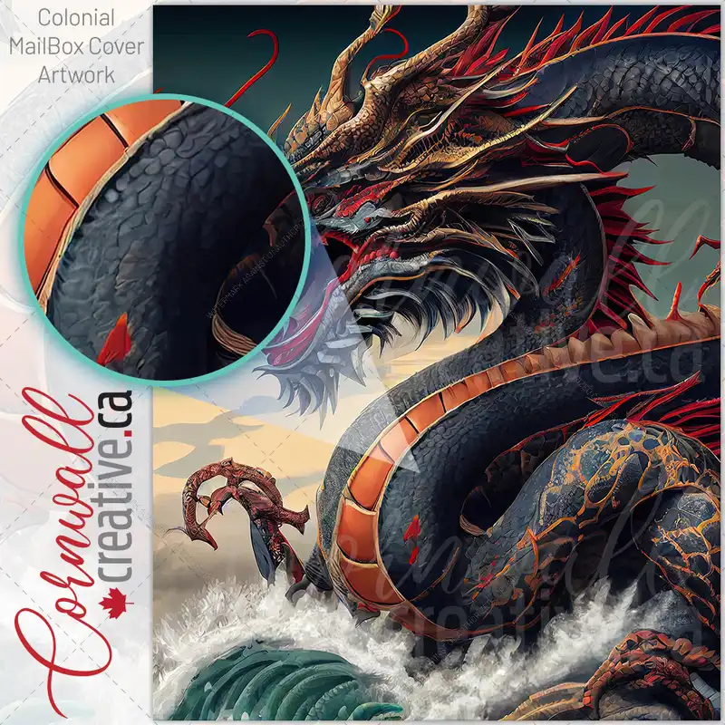 A Highly Detailed Image Of Colorful and Powerful Dragon Colonial Mailbox Cover
