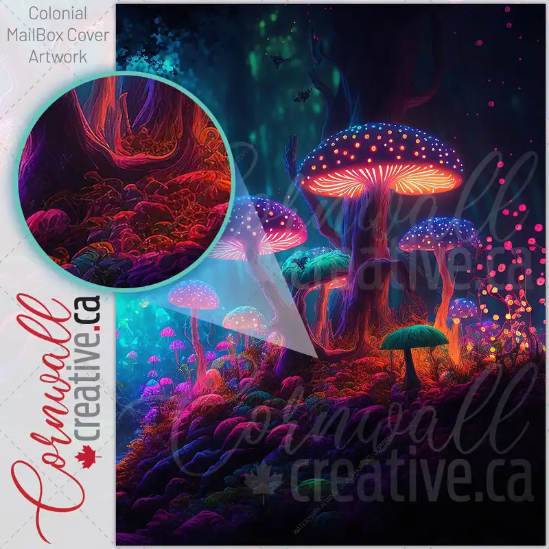 A Fairytale Forest A Surreal Mystical Landscape with Neon Mushrooms Colonial Mailbox Cover