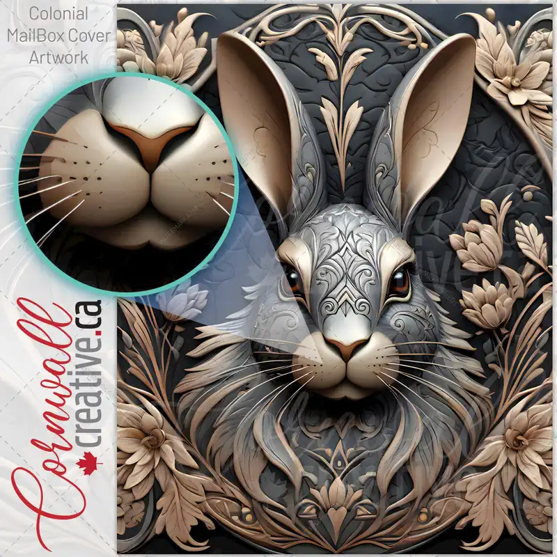 Grey Rabbit and Flowers Colonial Mailbox Cover