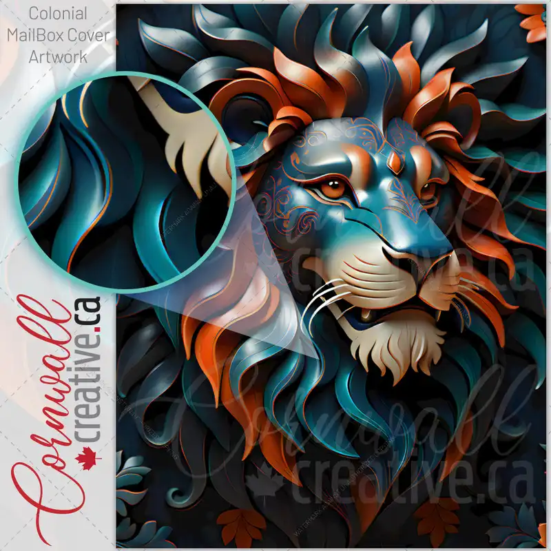 Metallic Lion with Flowers Colonial Mailbox Cover