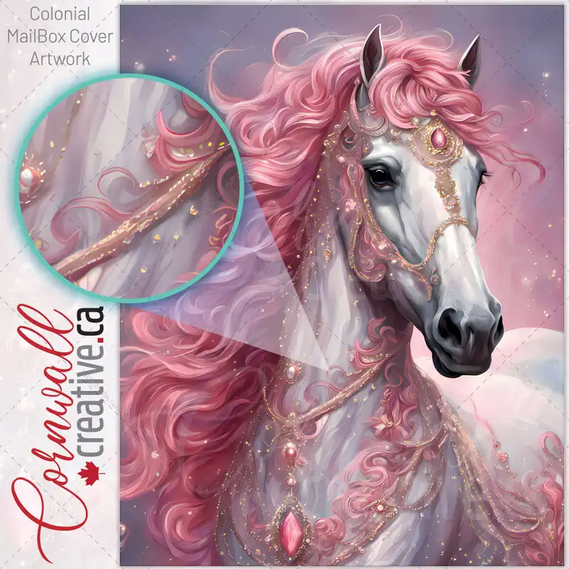 Pink and White Horse Colonial Mailbox Cover