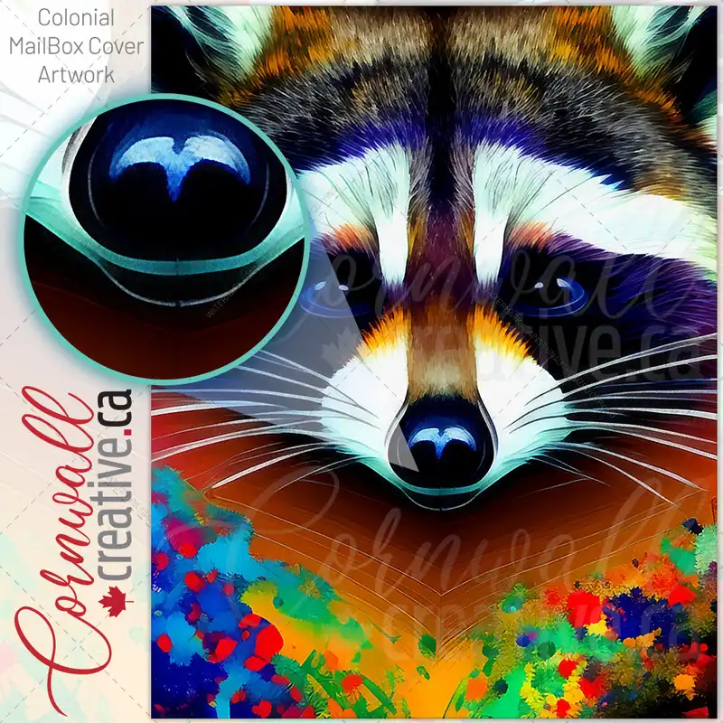 Pretty Rainbow Raccoon Colonial Mailbox Cover