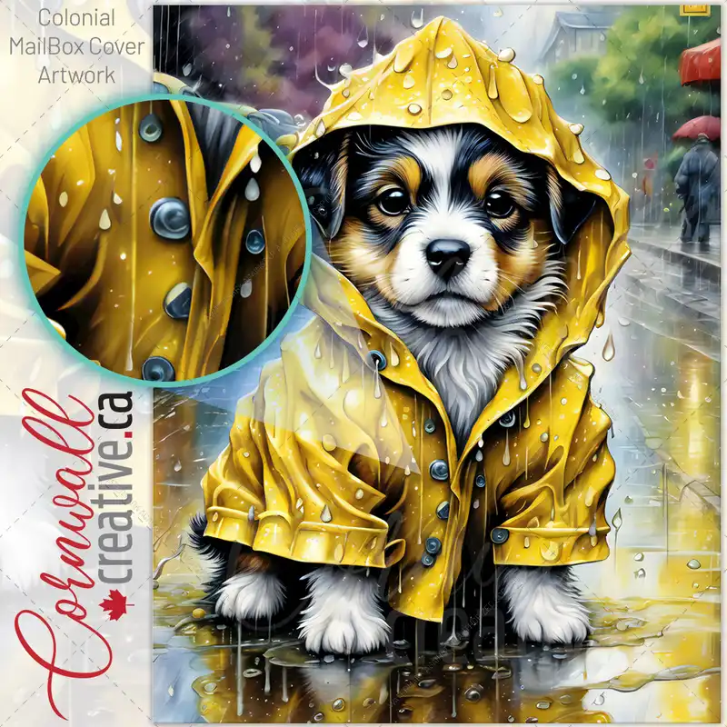Puppy in Yellow Raincoat Colonial Mailbox Cover