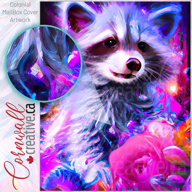 Rainbow Raccoon Portrait Colonial Mailbox Cover