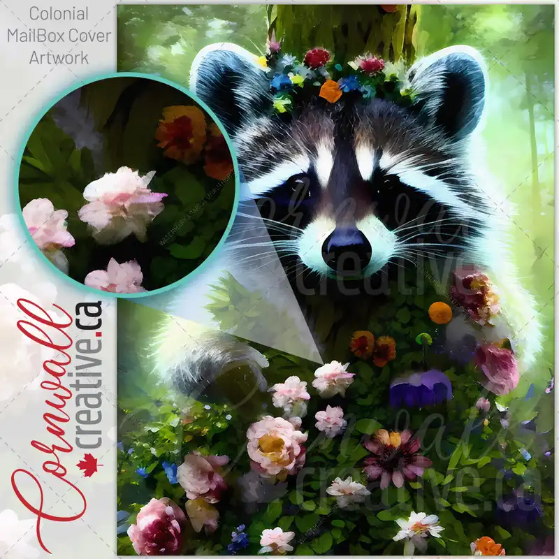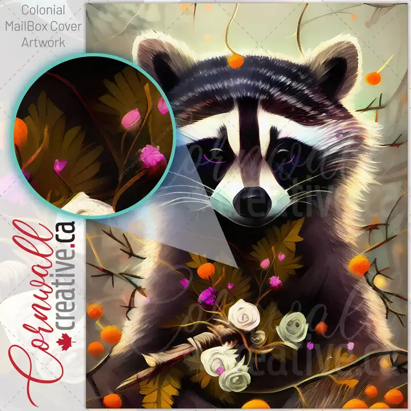 Raccoon with Flowers #3 Colonial Mailbox Cover