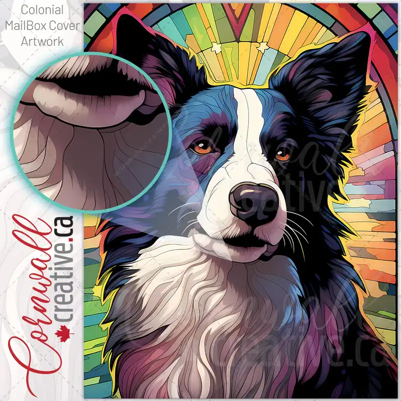 Stained Glass Border Collie Design Colonial Mailbox Cover