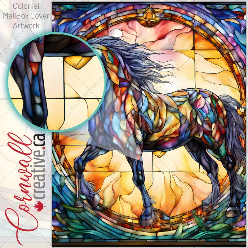 Stained Glass Colorful Stallion Colonial Mailbox Cover