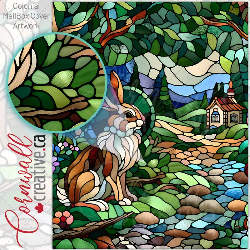 Stained Glass Bunny at the Cottage Colonial Mailbox Cover