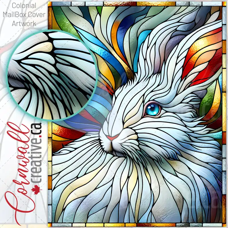 Stained Glass White Rabbit Colonial Mailbox Cover