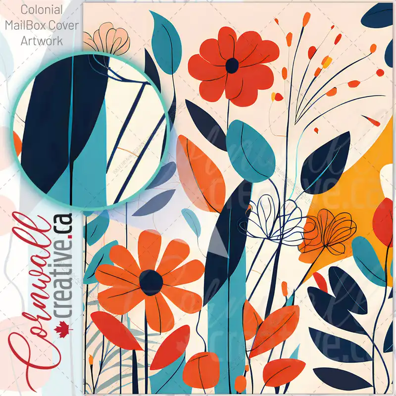 Modern Abstract Flowers Colonial Mailbox Cover