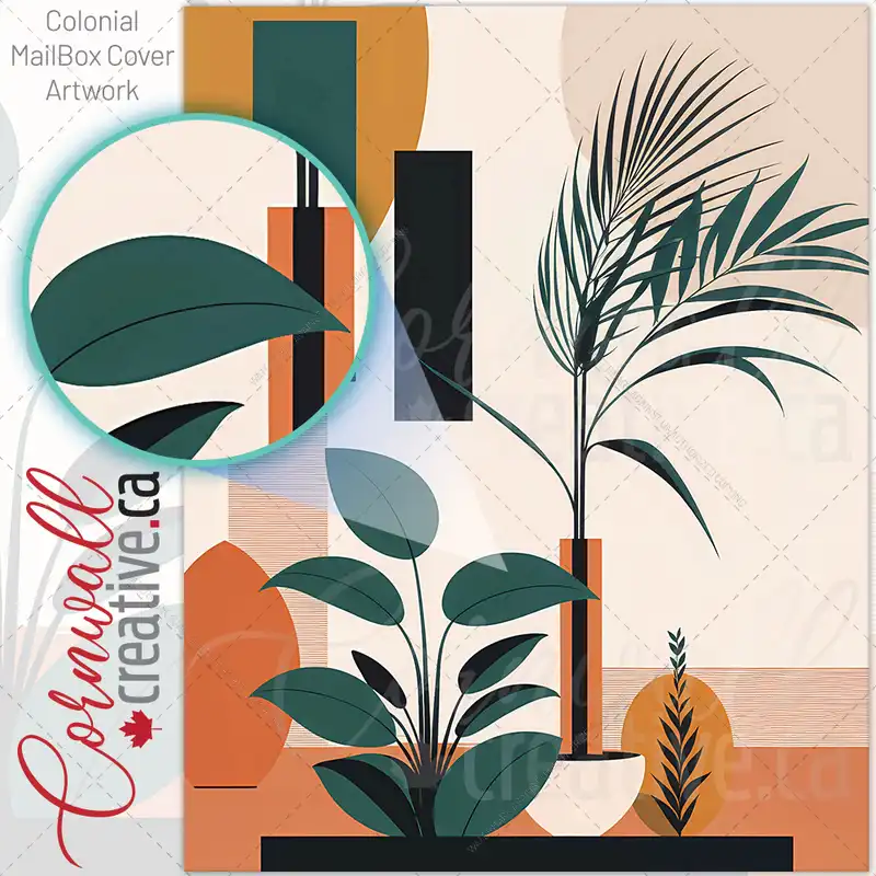 Modern Abstract Plant and Shapes Colonial Mailbox Cover