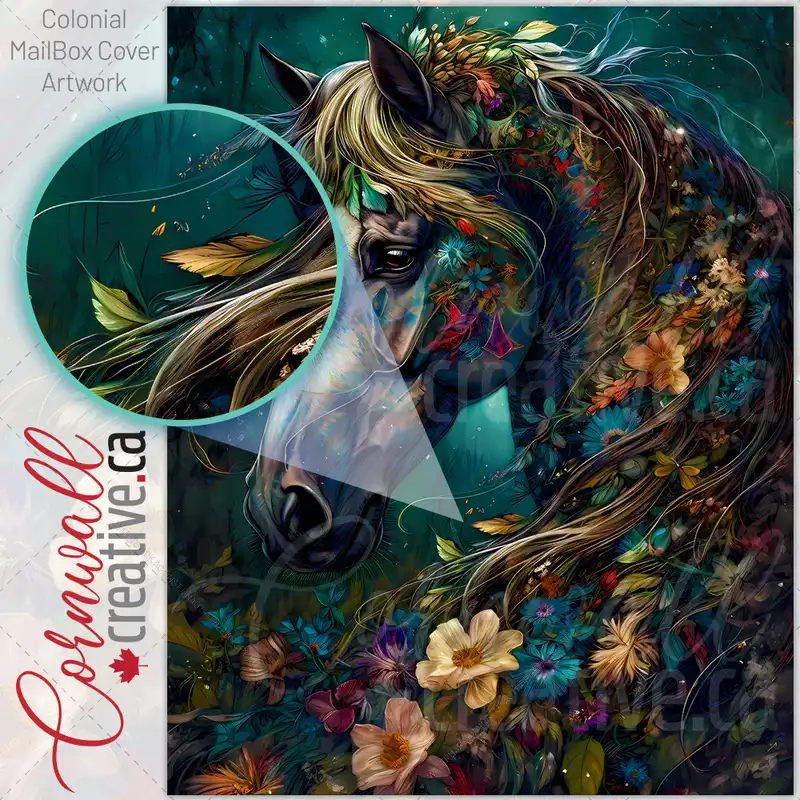 Beautiful Flower Horses #4 Colonial Mailbox Cover