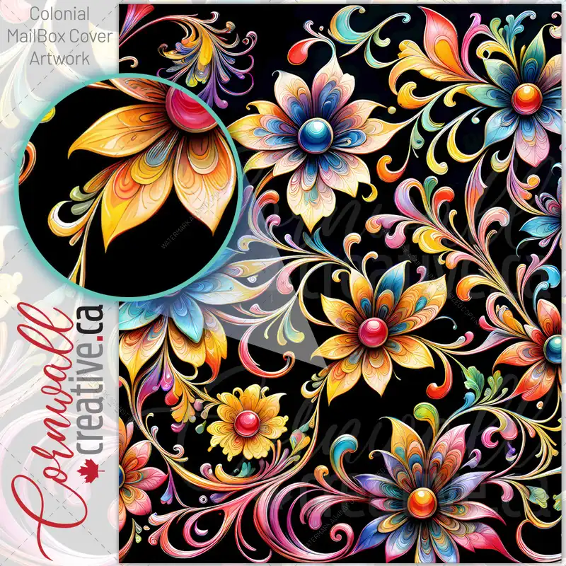 Beautiful Floral Folk Art Colonial Mailbox Cover
