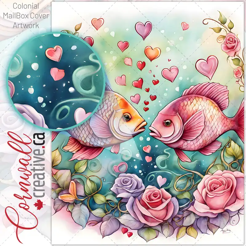 Valentine’s Fish in Love Colonial Mailbox Cover