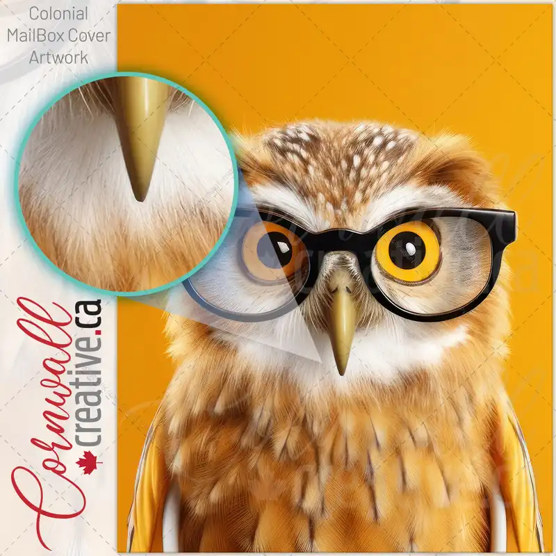 Vivid Orange ish Background With Owl Colonial Mailbox Cover