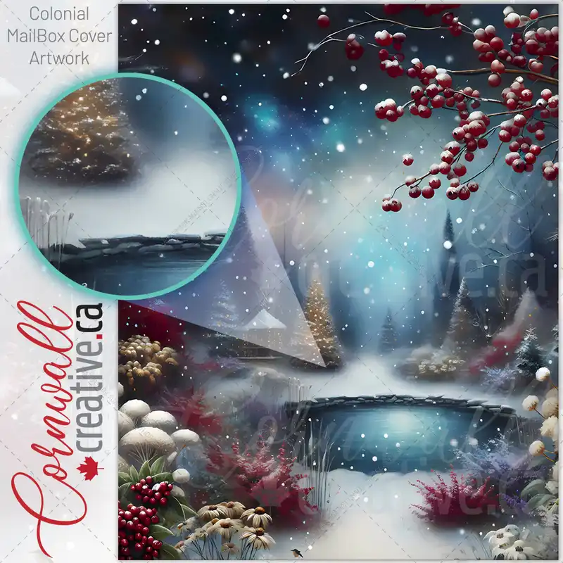 Vintage Winter Pond Colonial Mailbox Cover