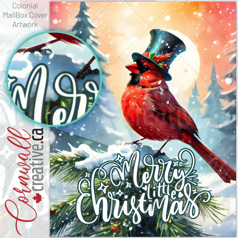 Winter Cardinal in Top Hat Colonial Mailbox Cover