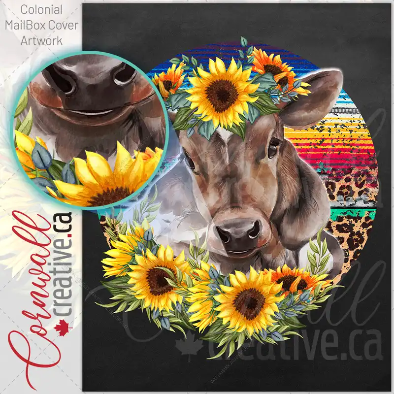 Young Cow with Sunflowers Colonial Mailbox Cover