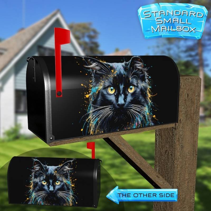 Abstract Black Cat Portrait Rural Farm Mailbox Cover