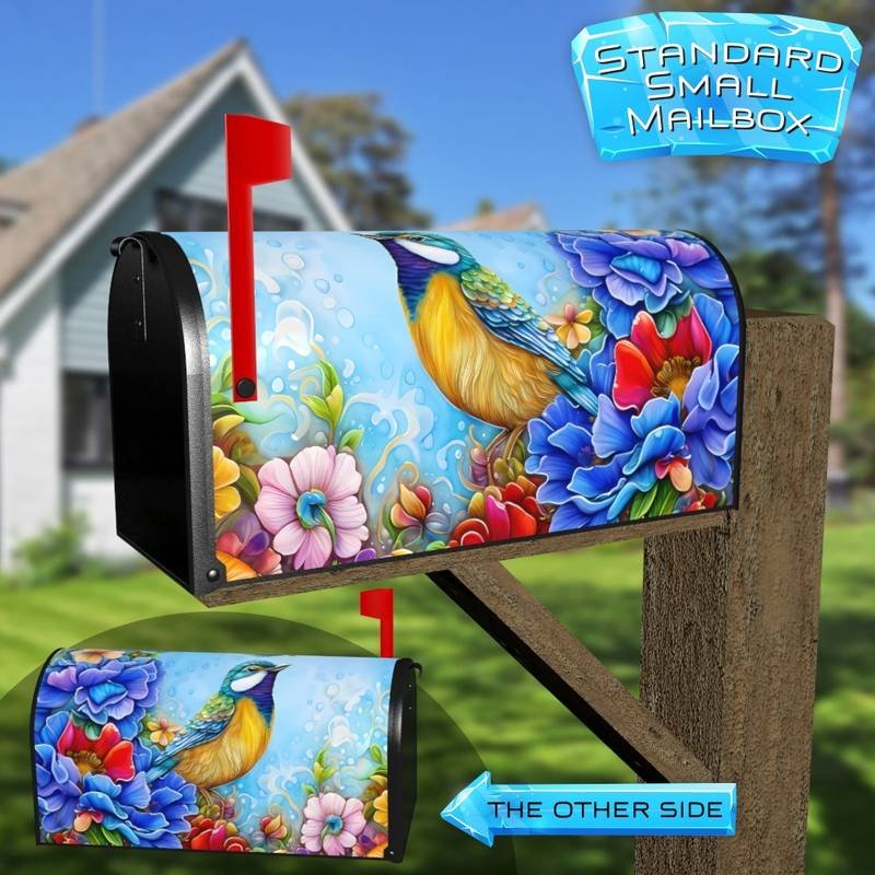 Pretty Bird and Colorful Flowers Rural Farm Mailbox Cover