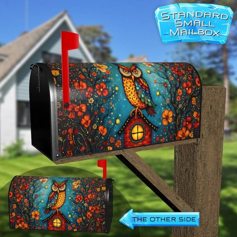 Folk Owl on the Birdhouse Rural Farm Mailbox Cover