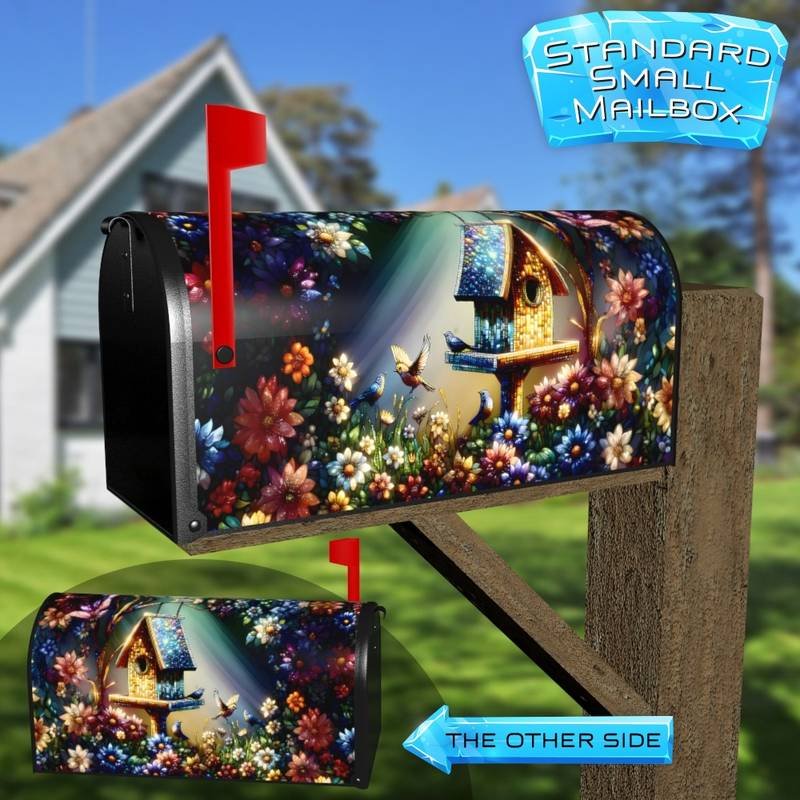 Stained Glass Morning Birds and Birdhouse Rural Farm Mailbox Cover