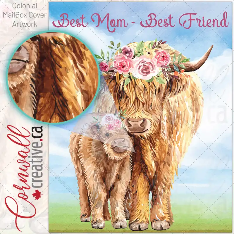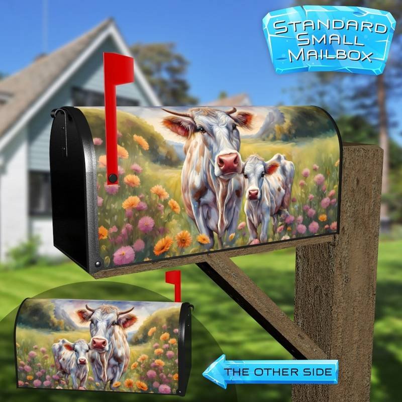 Mom and Baby Cow in the Meadow Rural Farm Mailbox Cover