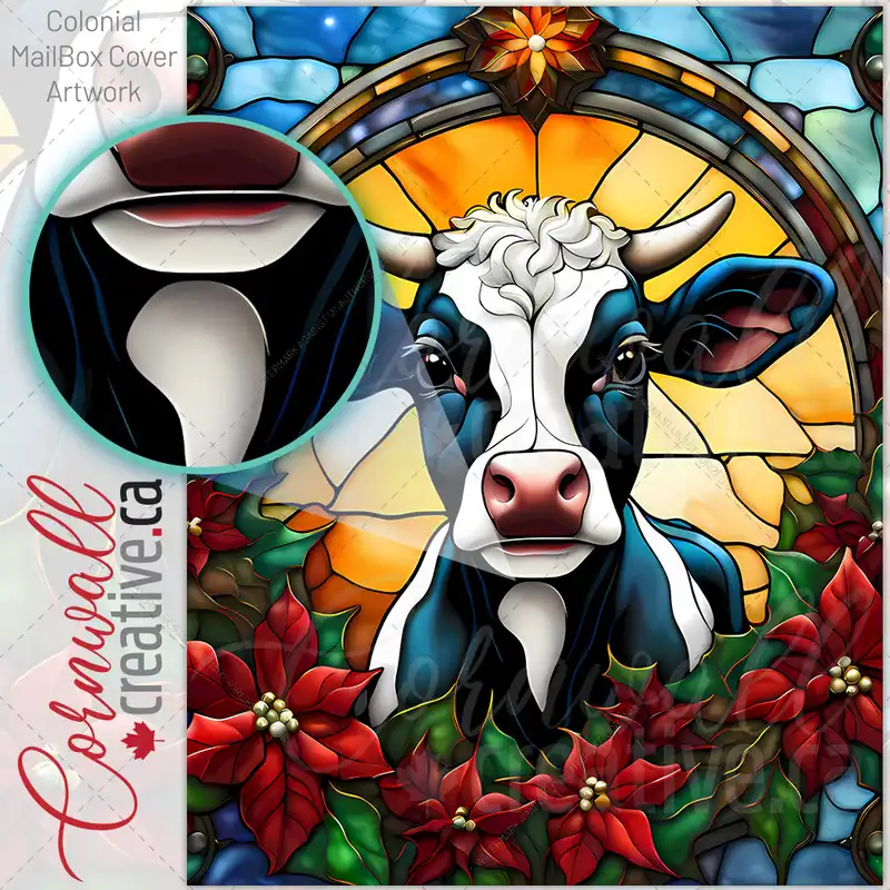 Stained Glass Christmas Baby Cow Colonial Mailbox Cover