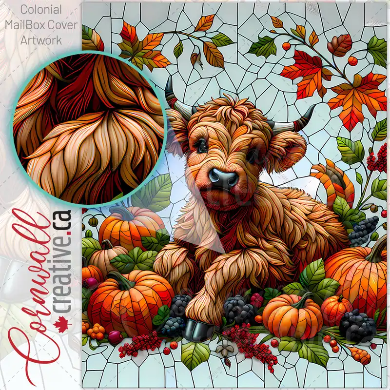 Stained Glass Autumn Highland Baby Cow Colonial Mailbox Cover