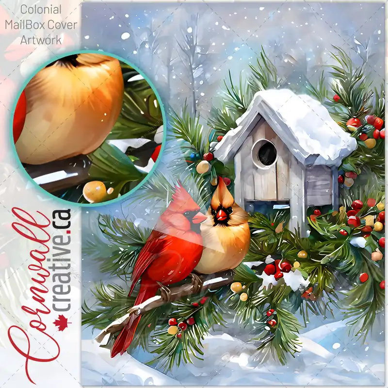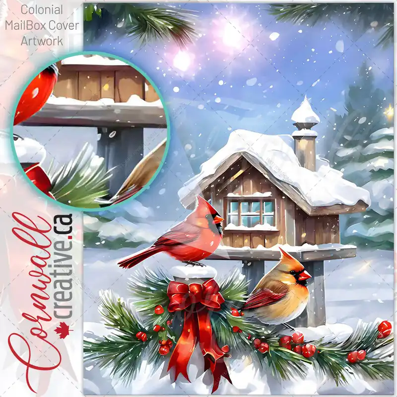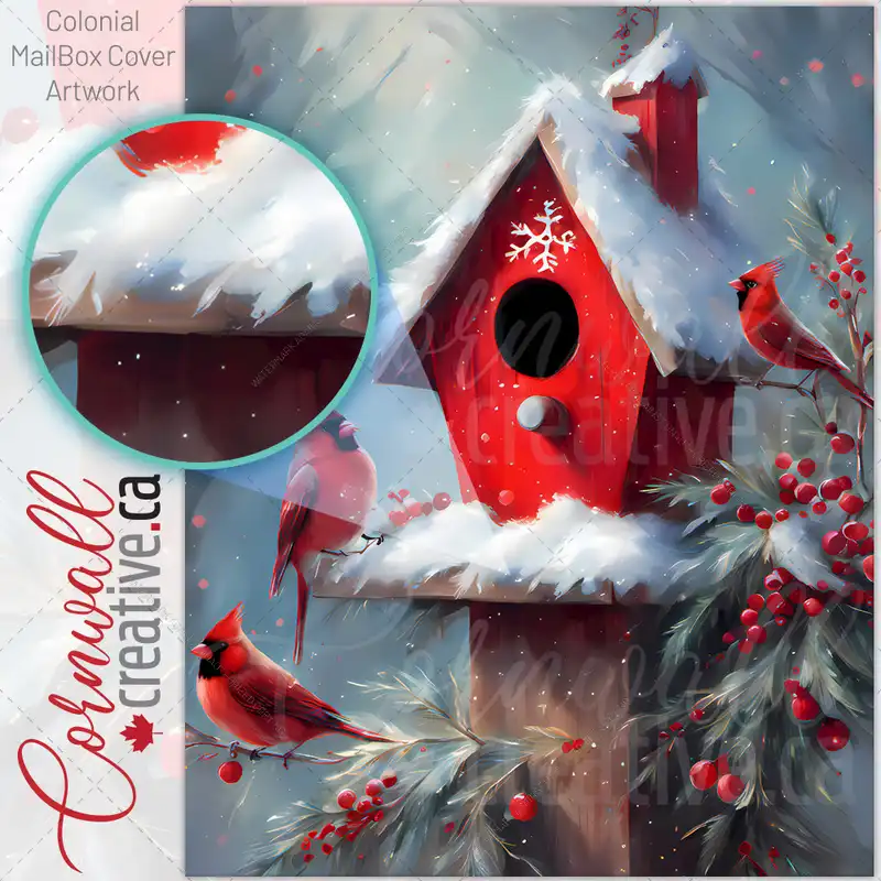Cardinals and Winter Birdhouse Colonial Mailbox Cover
