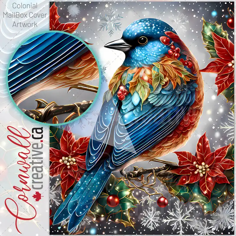 Stained Glass Christmas Blue Bird Colonial Mailbox Cover