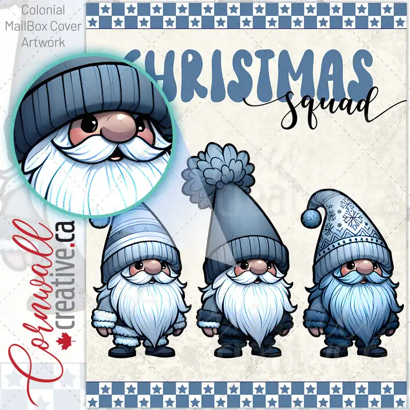 Three Blue Christmas Gnomes Colonial Mailbox Cover