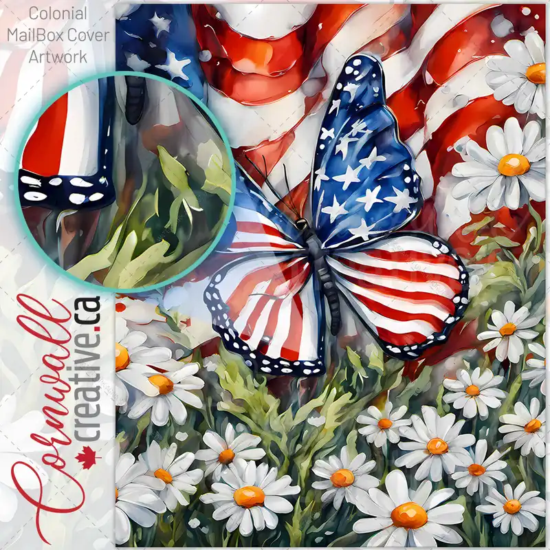 USA Flag with Butterfly Rural Farm Mailbox Cover