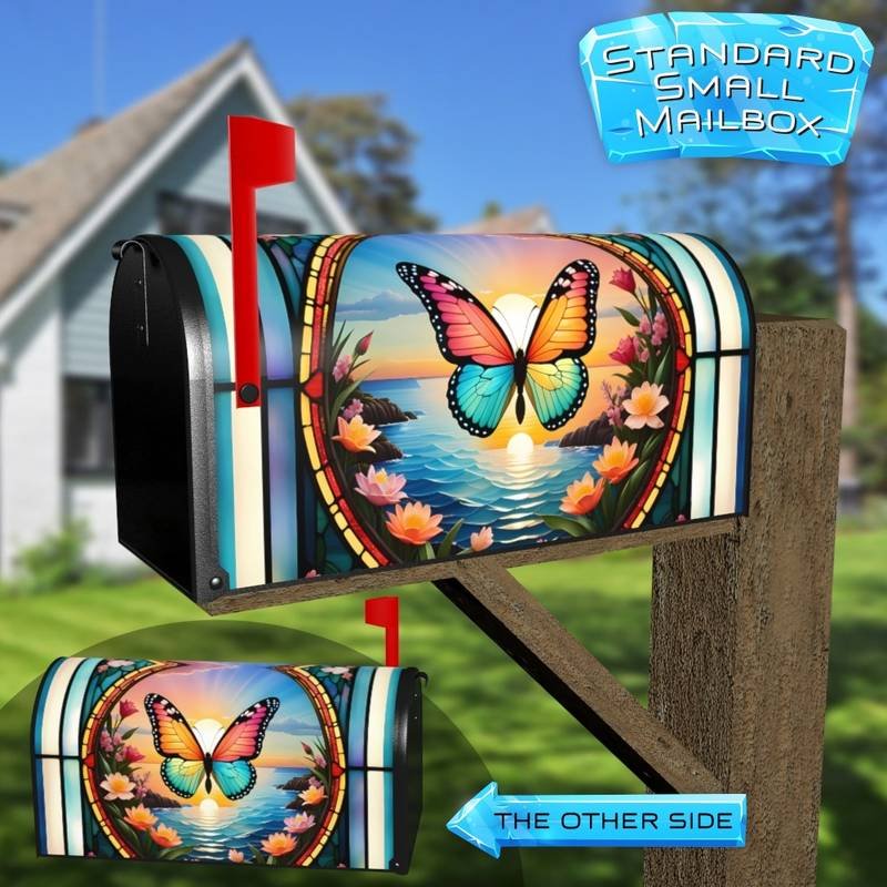 Stained Glass Sunset Butterfly Rural Farm Mailbox Cover