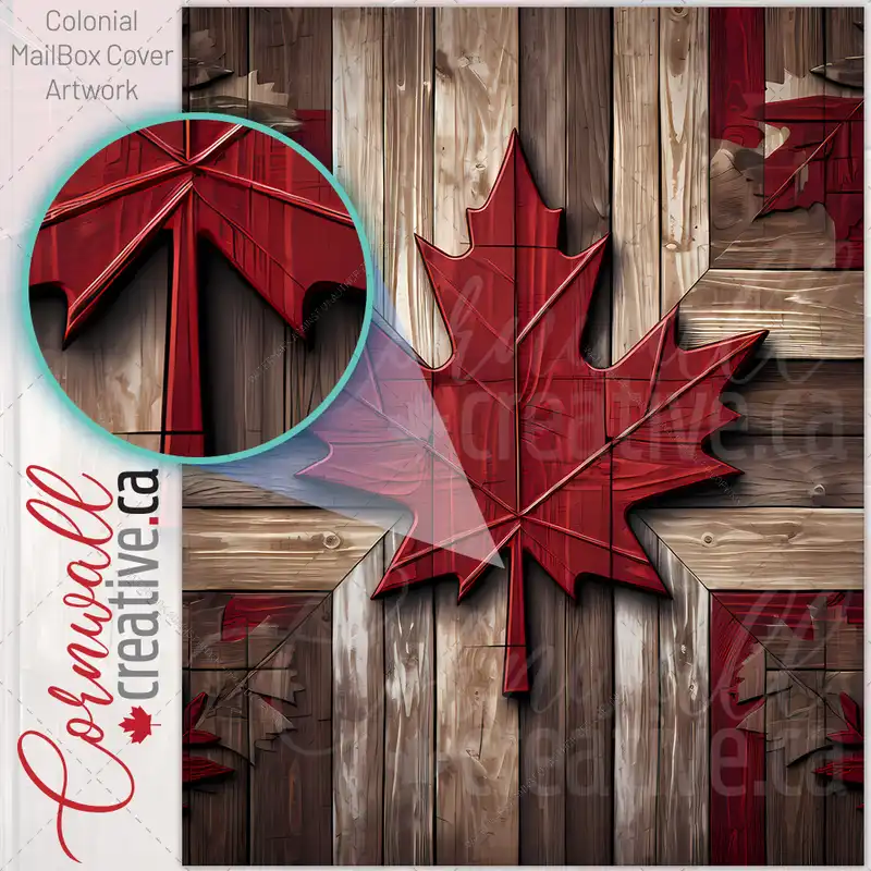 Canadian Flag on Wood Pattern Colonial Mailbox Cover
