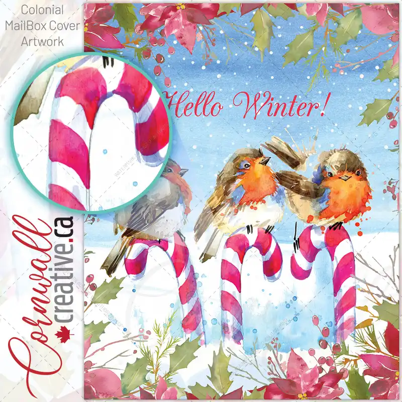 Robins Sitting on Candy Canes Colonial Mailbox Cover