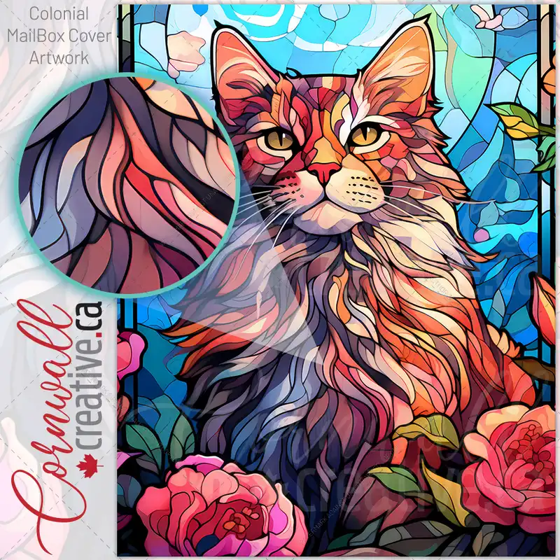 Stained Glass Maine Coon Cat Design Colonial Mailbox Cover
