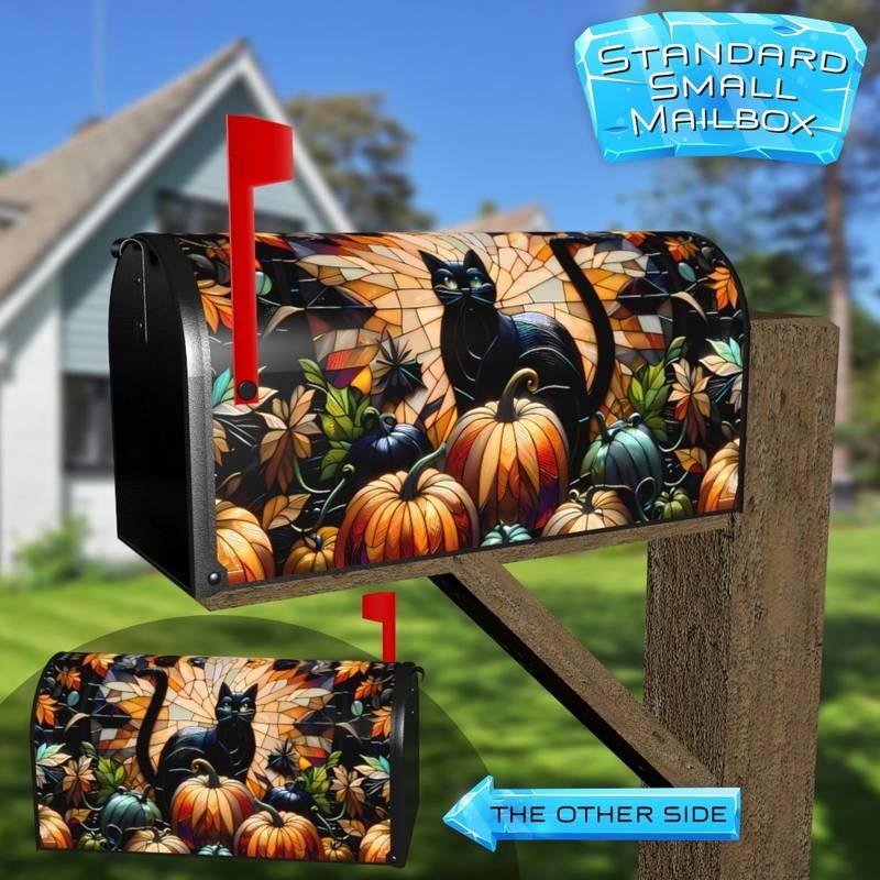 Stained Glass Halloween Cat Colonial Mailbox Cover