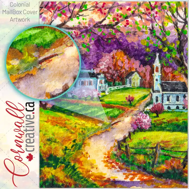 Adorable Little Town and Church Colonial Mailbox Cover